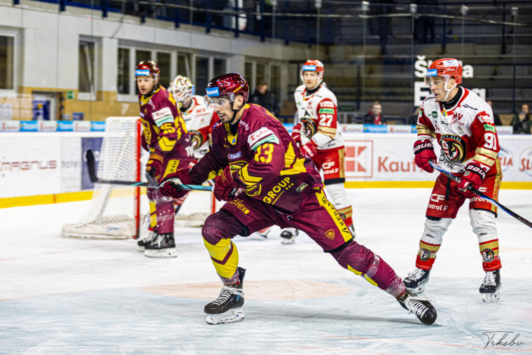 Góly a asistencie: 10. Ahl (Bukarts, Šiška), 21. Descheneau, 33. Ahl (Mikuš, Bukarts), 55. Descheneau (Ahl, Varone) - 55. Berlev (Macejko, Avcin). Rozhodcovia: Baluška, Klejna - Frimmel, Bezák